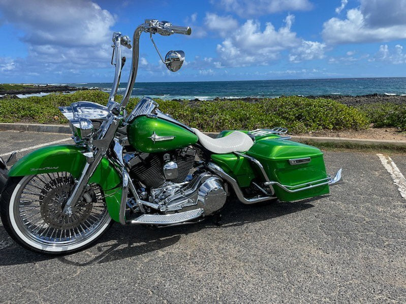 - Allows multiple riding positions from an upright, back angle (similar to riding with mid-controls) to a laid-back, stretched out position (like riding with foot controls)